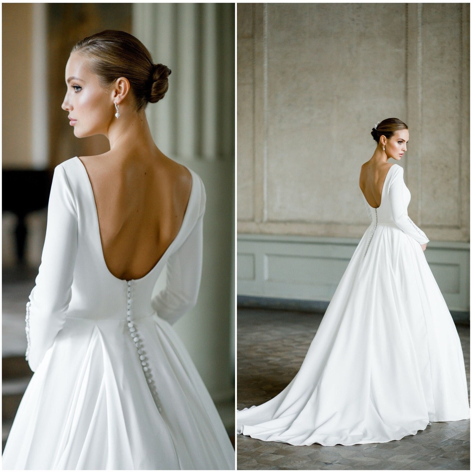 Elegant Bride Dress From Crepe With Long Sleeves And Open Etsy Canada